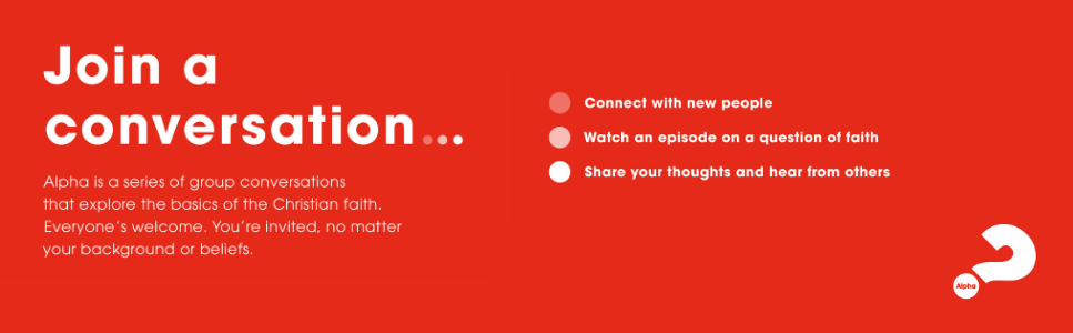 Our next Alpha course begins Sunday, January 18th, 2026 at 1:00pm, at New Frontiers Church.